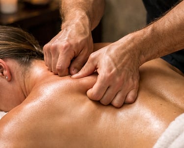 Deep tissue massage is a therapeutic massage that targets the deeper layers of muscles, tendons, and fascia to relieve chronic tension and tightness. Using slow, firm strokes and focused pressure, it helps break down adhesions, improve flexibility, reduce pain, and enhance circulation.